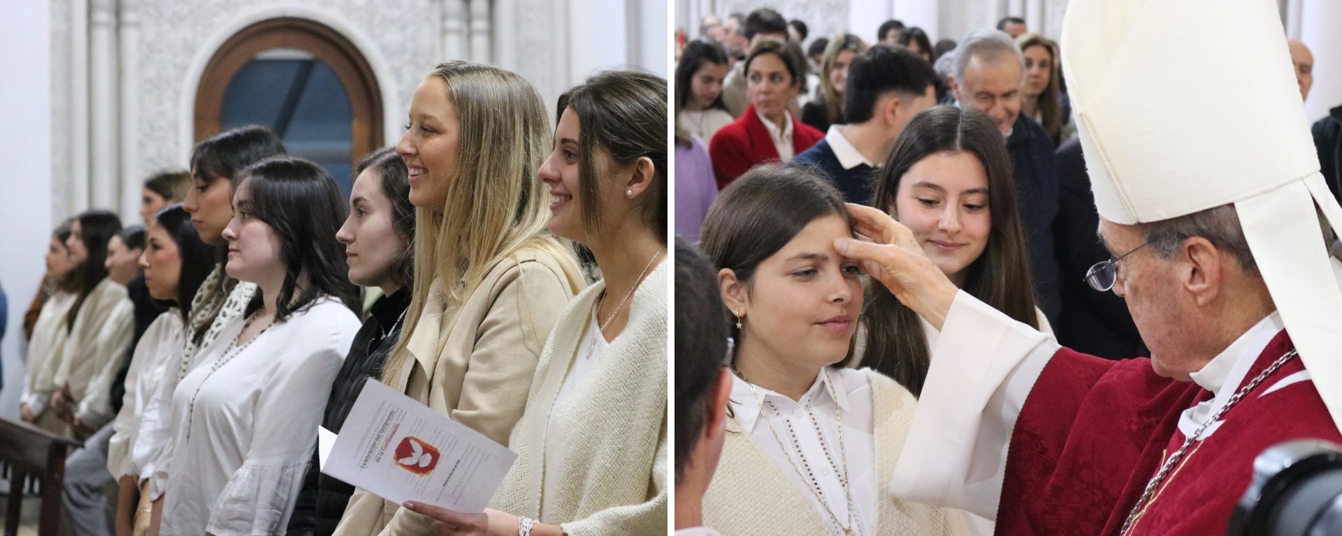 Cuando aún faltaba media hora para el inicio de la ceremonia, la iglesia de Ntra. Sra. Del Santo Rosario y Santo Domingo (Dominicos) ya estaba colmada de personas que querían acompañar a quienes daban un paso más en la confirmación de su fe. Los que se habían preparado en la UM se ubicaron a la izquierda del templo, y las de Los Pilares estuvieron a la derecha.