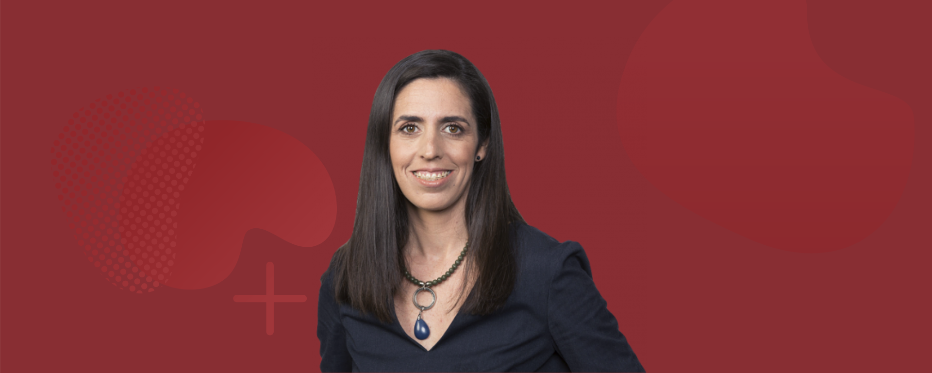 Isabel Laventure, sobre fondo rojo oscuro