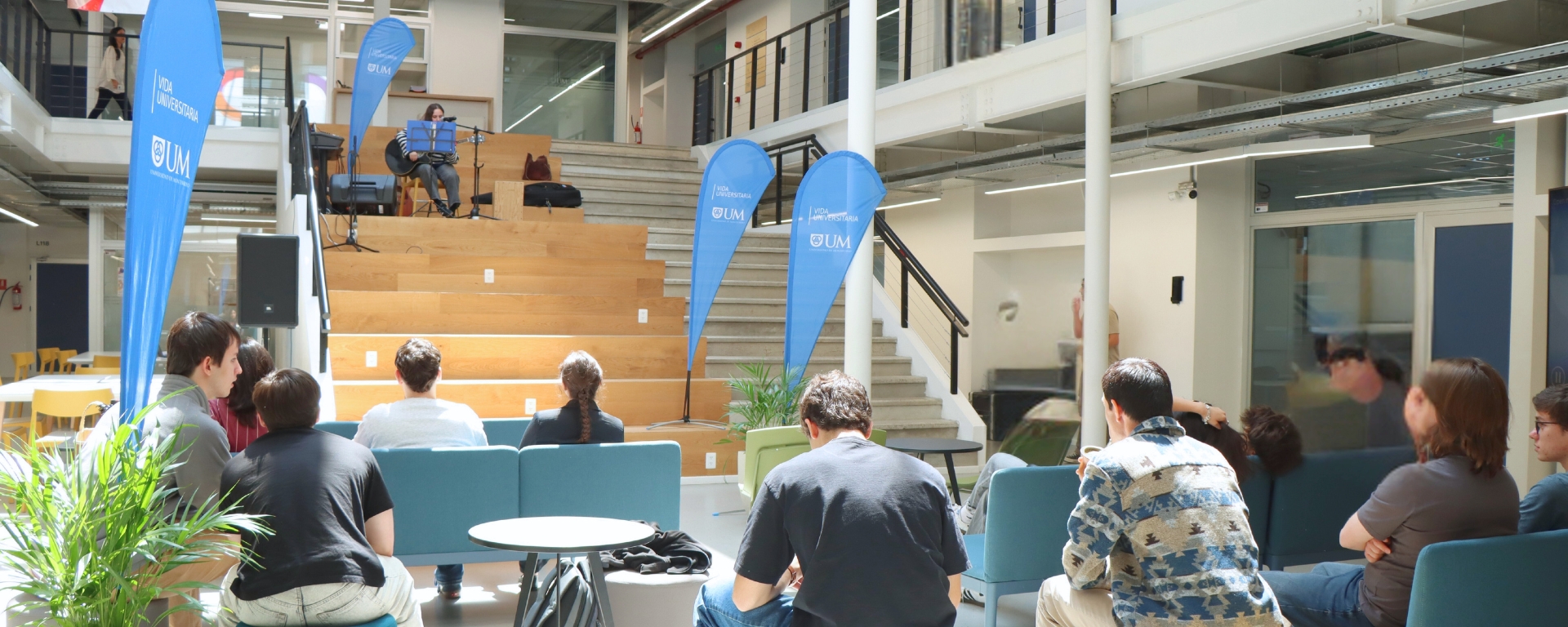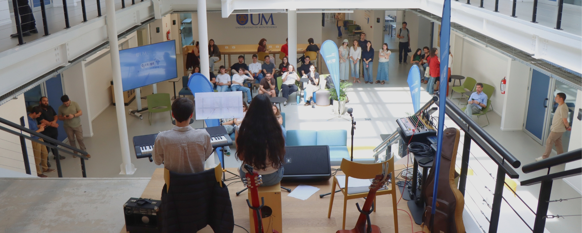 El Departamento de Vida Universitaria, a través de su área Bienestar y cultura, inauguró el “Open mic de Vida Universitaria”, un ciclo de encuentros musicales en el que alumnos de la UM realizaron performances artísticas en las gradas del edificio UM, en el Parque de Innovación del LATU. En esta edición, hubo dos encuentros, los dos últimos jueves de octubre en el horario del mediodía. A continuación, los testimonios de los participantes: