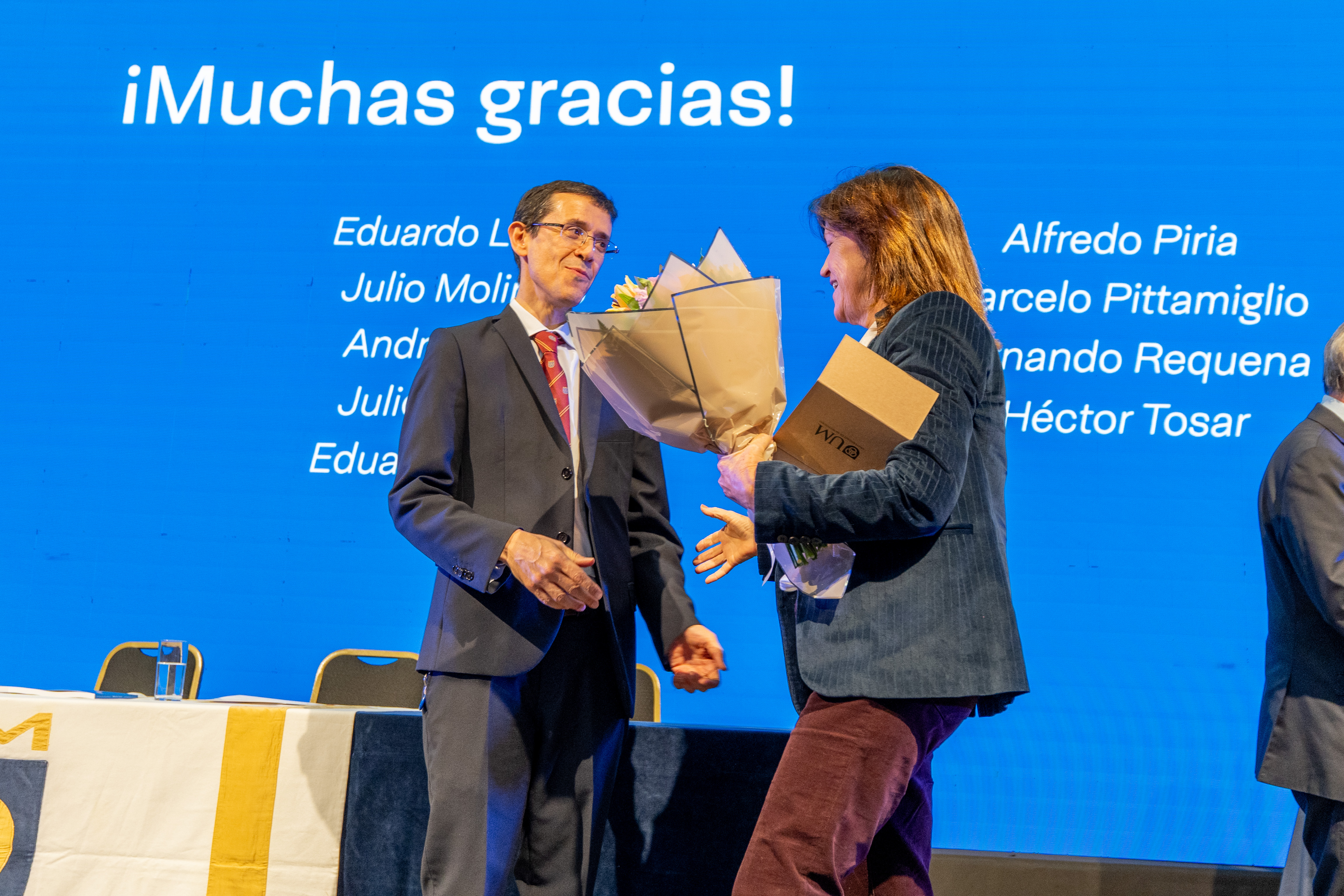 Uno de los reconocidos de la Facultad de Ciencias Empresariales y Economía (FCEE) fue Humberto Barrella, quien ingresó a la Universidad en 1995. “Este momento me emociona un poco porque ya son muchos años acá”, comienza el profesor. Este 2026 dictará su trigésimo segundo curso en la UM. “Entré cuando la Facultad se estaba recién armando y tuve la suerte de quedarme”. En cuanto al reconocimiento otorgado, Barella expresa que es una “gran satisfacción” ser reconocido en un ambiente “tan lindo como este”.