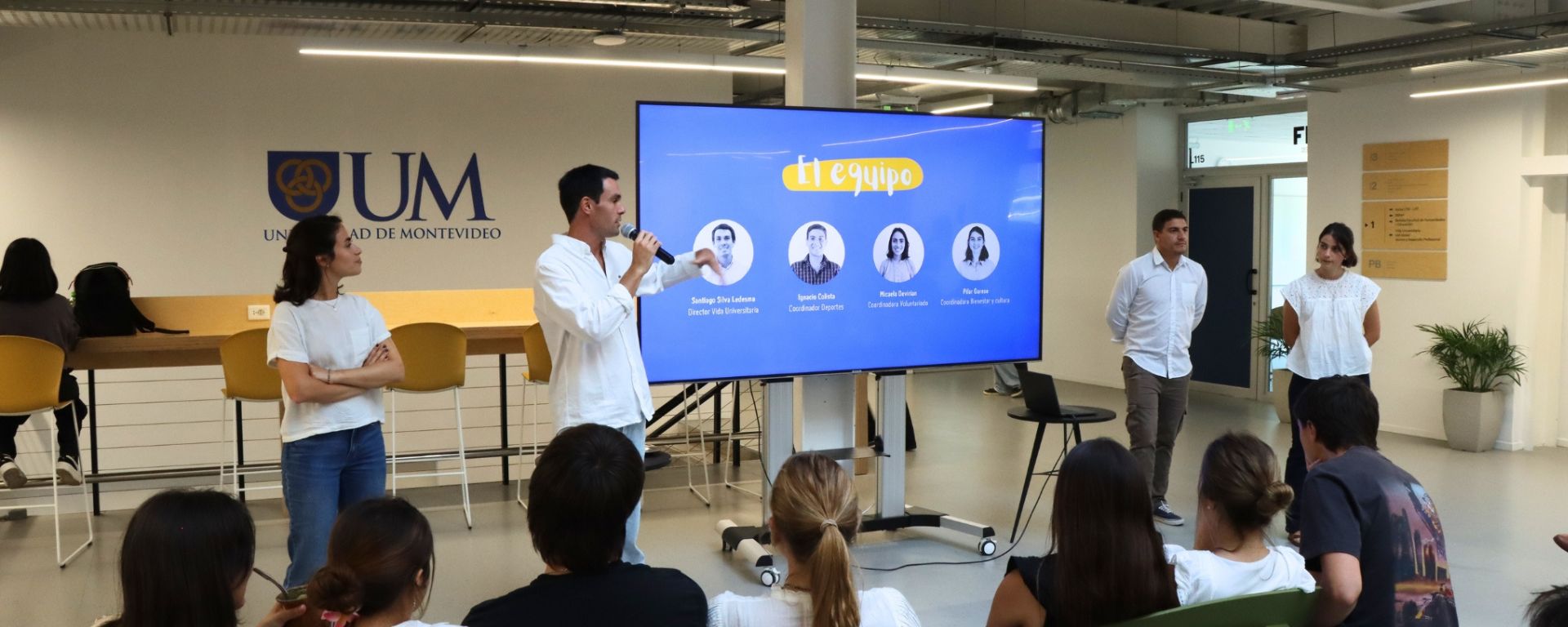El jueves 12 fue el momento centrado en los nuevos estudiantes, que tuvieron una jornada especial de bienvenida organizada por Vida Universitaria. En diversas charlas les explicaron acerca de algunos servicios transversales de la UM como Vida Universitaria, Capellanía, Internacionales, Desarrollo profesional y Alumni, e Initium.
